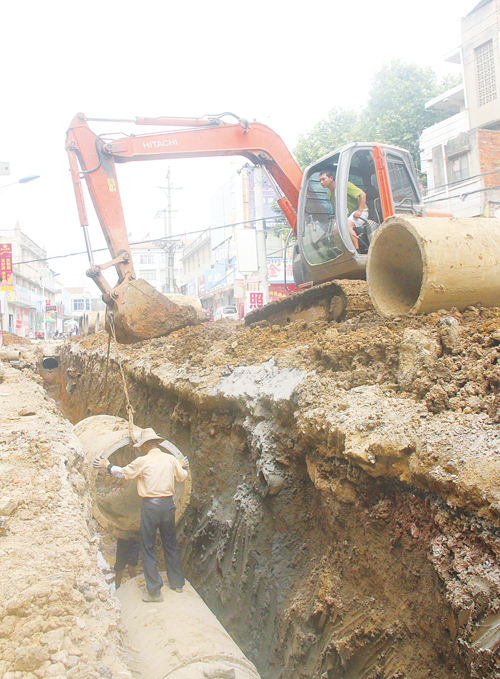 孝昌縣鄒崗鎮(zhèn)鎮(zhèn)區(qū)現(xiàn)有排水管網(wǎng)存在使用時(shí)間長(zhǎng)、規(guī)模小、規(guī)劃不合理等問(wèn)題。今年,鄒崗鎮(zhèn)投資13萬(wàn)元,對(duì)鎮(zhèn)區(qū)排水管網(wǎng)進(jìn)行改造,加快排水速度。圖為孝昌縣鄒崗鎮(zhèn)文衛(wèi)街下水道改造施工現(xiàn)場(chǎng),吊車正在安裝涵管。