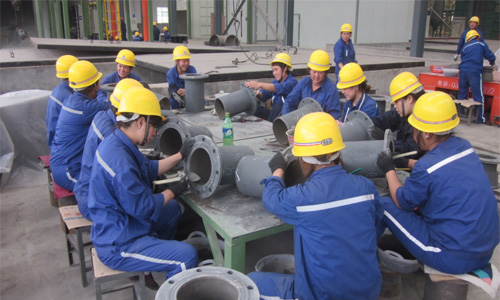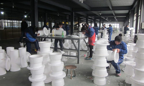 采用全封閉半自動(dòng)成型機(jī),直管部分整體成型,避免了半模成型膜片粘接產(chǎn)生橢圓。帶支管類(lèi)管件支管部分整體成型。